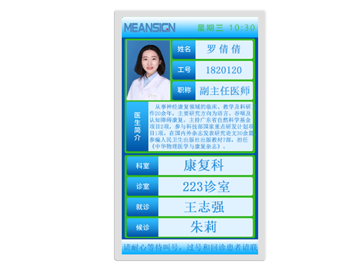 用途:醫生診室門口屏,用于顯示二級分診叫號信息