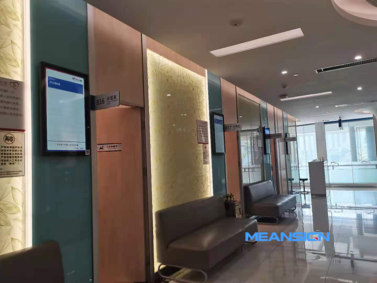 在每個科室診室門口,安裝診室門口屏,顯示日期時間、當前檢查的客戶姓名、等待檢查的客戶信息、以及下一個科室檢查項目。指引體檢人員有序進行檢查,不用盲目跑來跑去,縮短大家的排隊等候時間,提高效率,提升體檢中心的服務質量,也能減輕體檢中心醫護工作人員的工作量。