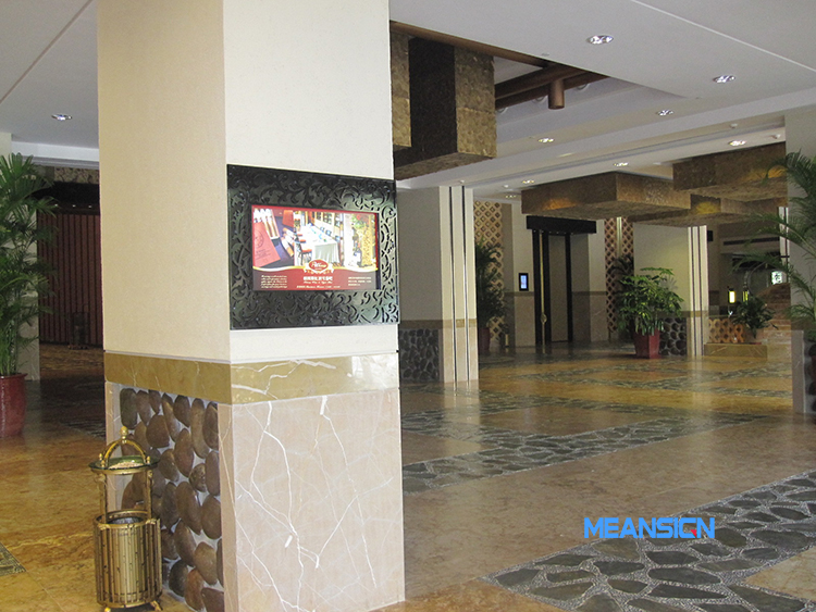 在酒店入住大堂、宴會廳大堂、會議廳門口、餐飲區、電梯口、公共走道處,覆蓋信息發布一體機,信息發布系統以視頻、圖文并茂的方式,發布酒店宣傳片、酒店特色、客房環境介紹、酒店服務、宴會廳酒席介紹、會議廳環境介紹、會議指引、美食、周邊游玩等信息。信息發布一體機,采用嵌入式的方式安裝在墻壁內,搭配酒店建設裝修風格,與酒店融為一體,提升酒店的形象檔次。